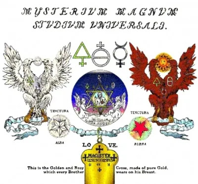 Rosicrucian diyakini terbentuk berkat ide kelompok Protestan di Jerman pada era 1600-an dengan tiga rangkaian dokumen yang diterbitkan. Seluruh dokumen itu bercerita mengenai alkemis misterius bernama Christian Rosenkreuz yang pergi ke beberapa kelompok rahasia di dunia untuk memberi tahu bahwa ada sekelompok alkemis rahasia yang siap mengubah politik di Eropa serta undangan untuk menghadiri pernikahan Raja dan Ratu 'Kimia' di istana Miracles.